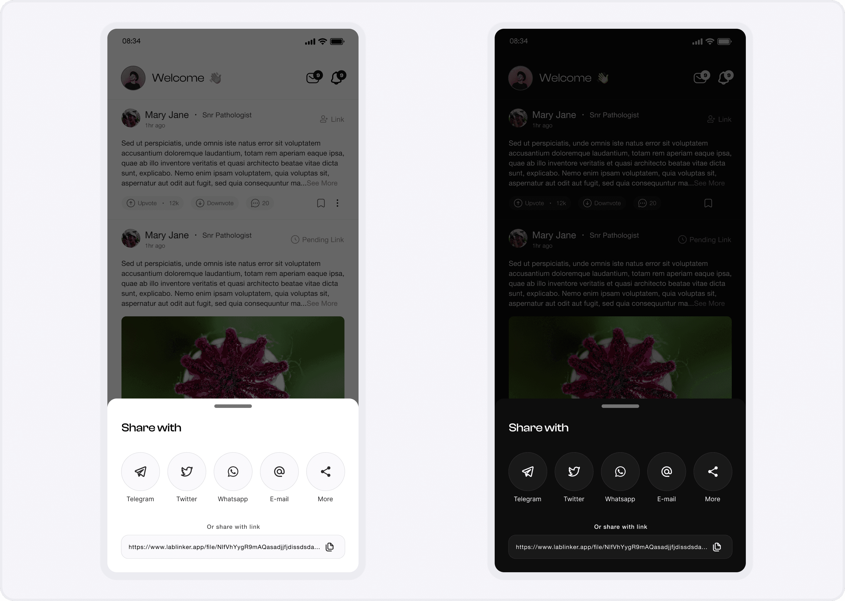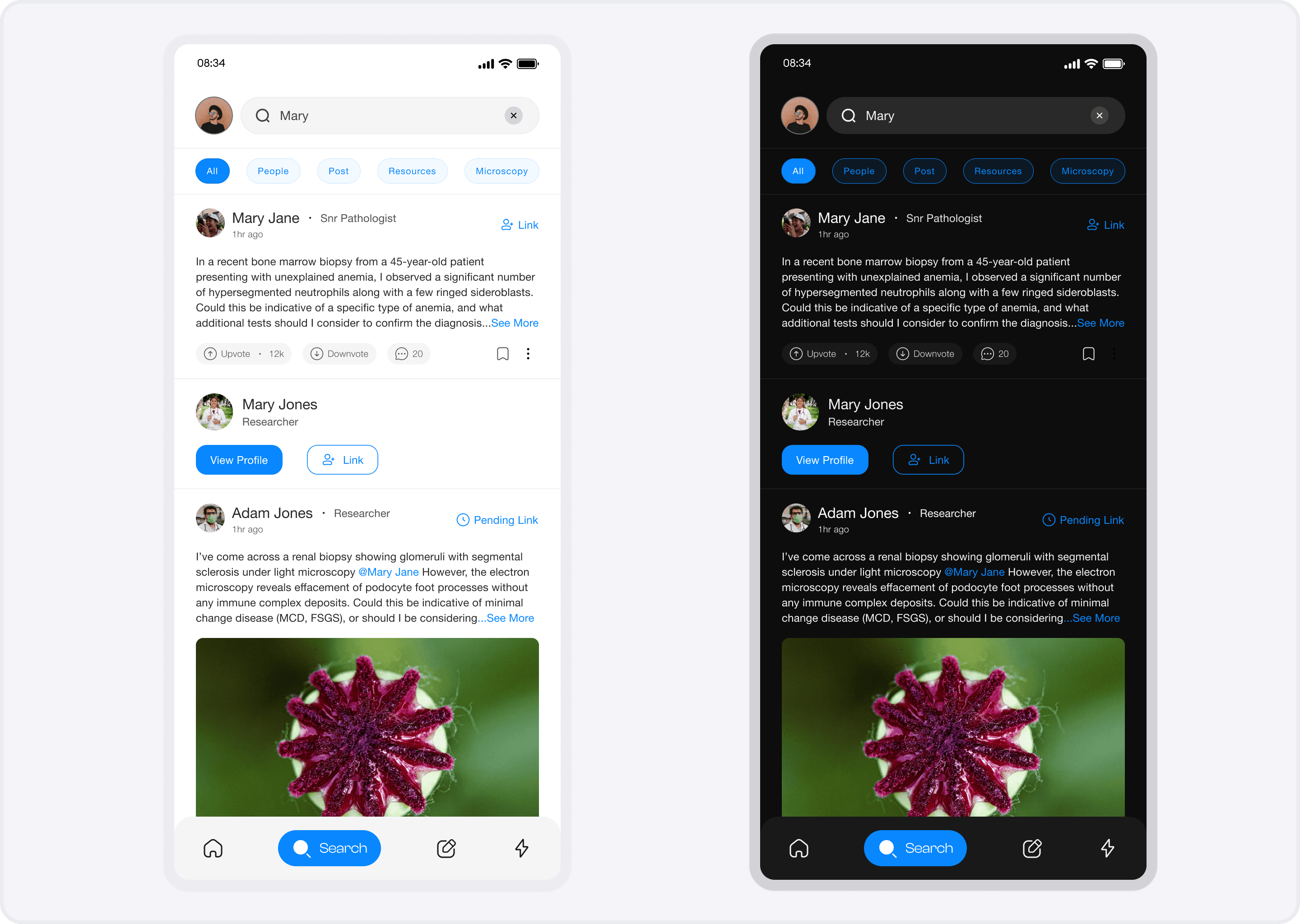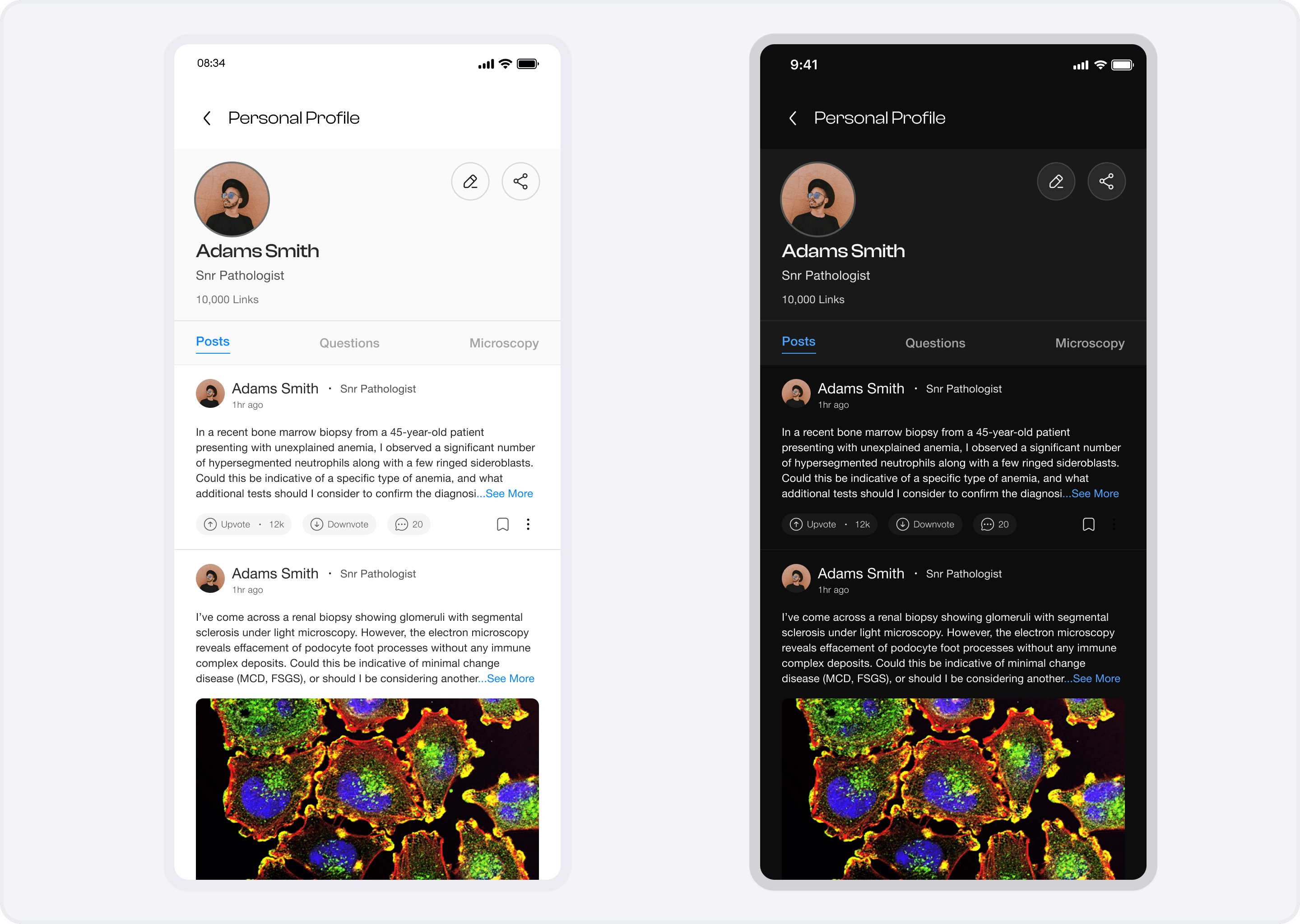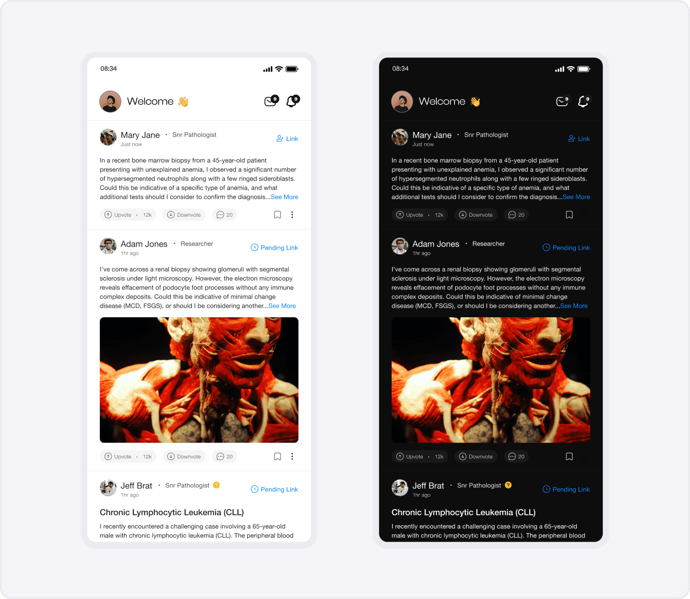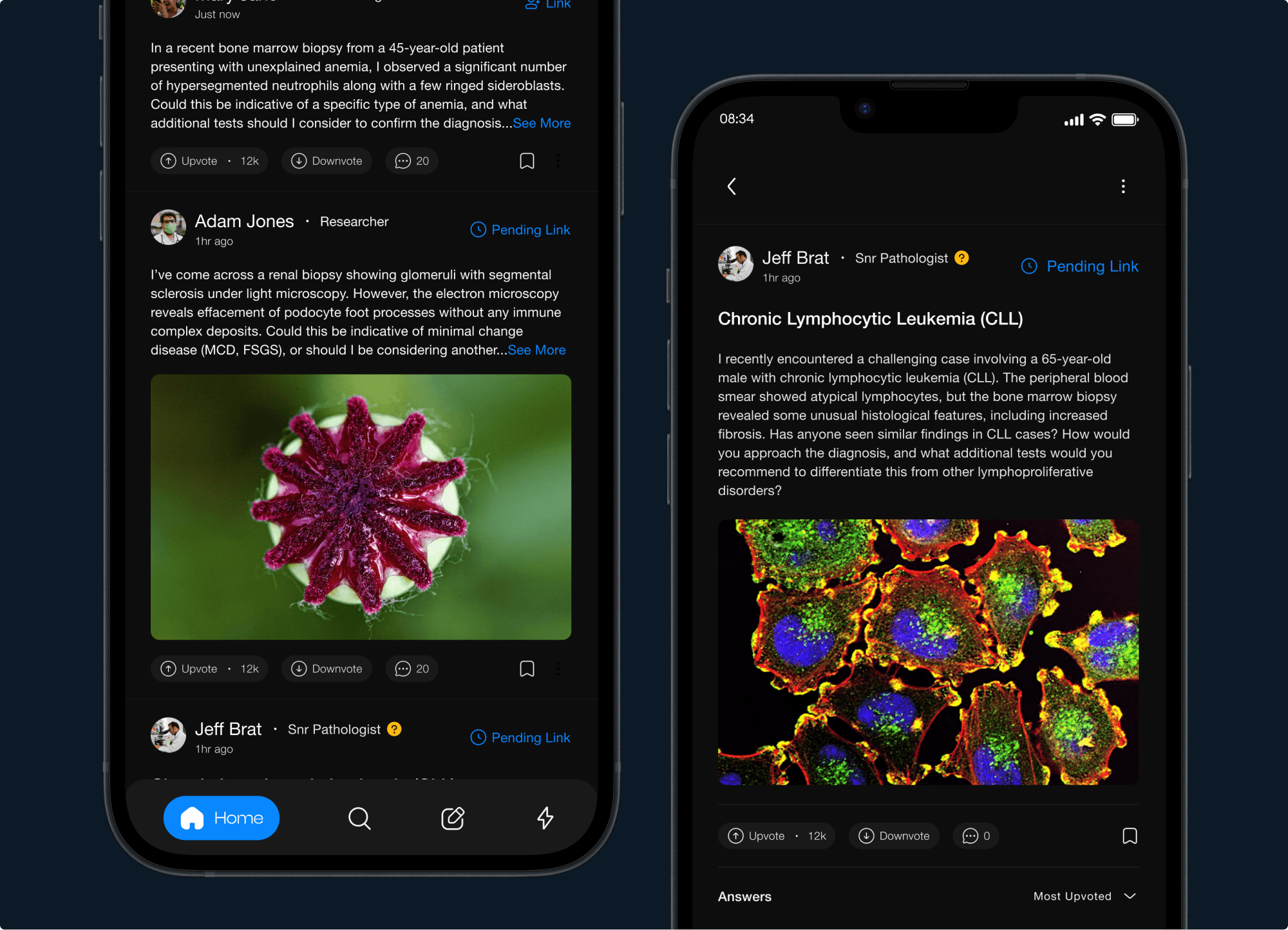 Lead Product Designer: I spearheaded the research and design of a social-first platform for medical laboratory professionals. I translated complex laboratory workflows into a streamlined learning module and an AI-powered upload interface, ensuring the experience was both technically accurate and visually elegant.